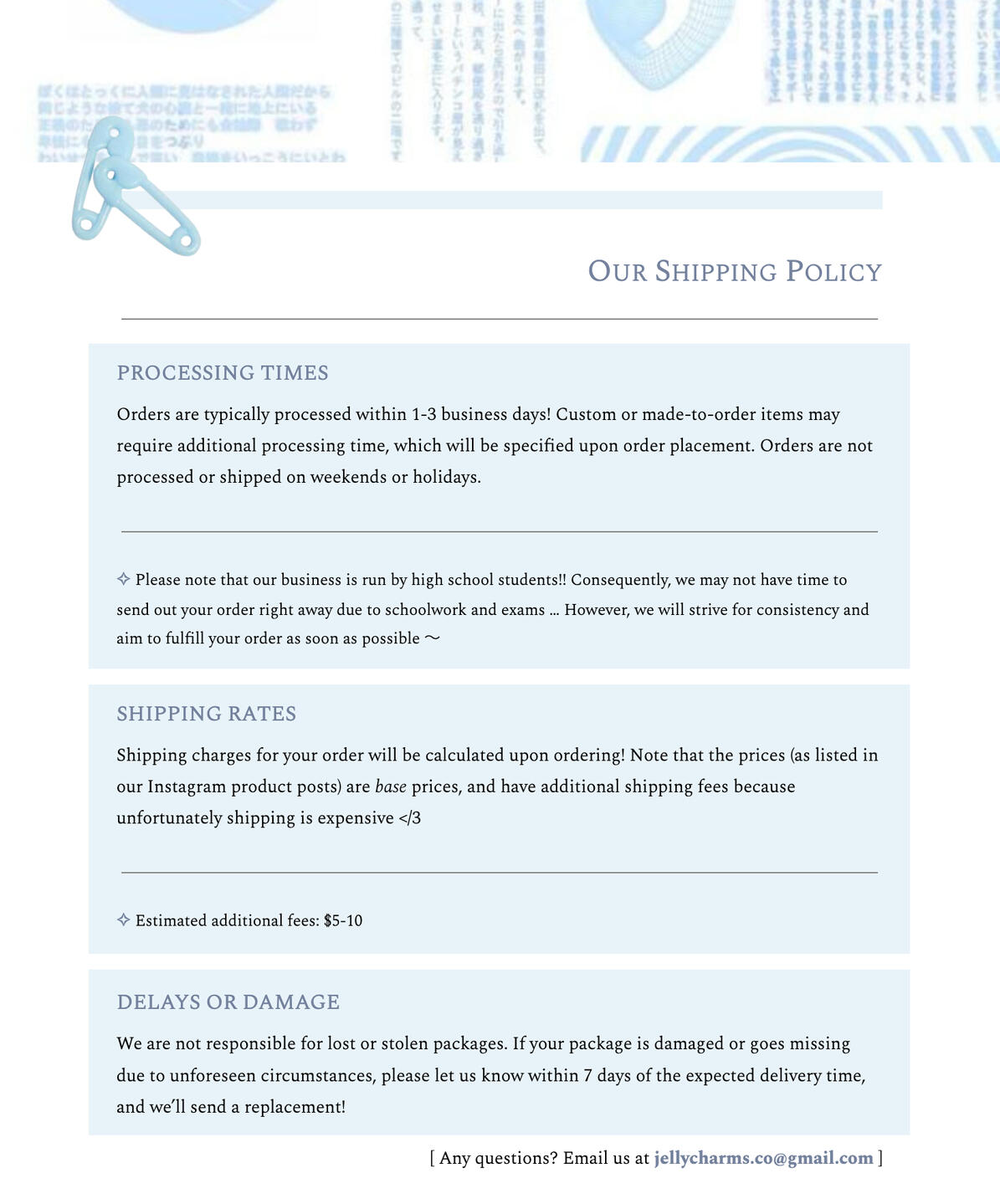 ⊹ Click to view our Shipping Policy, or scroll down!